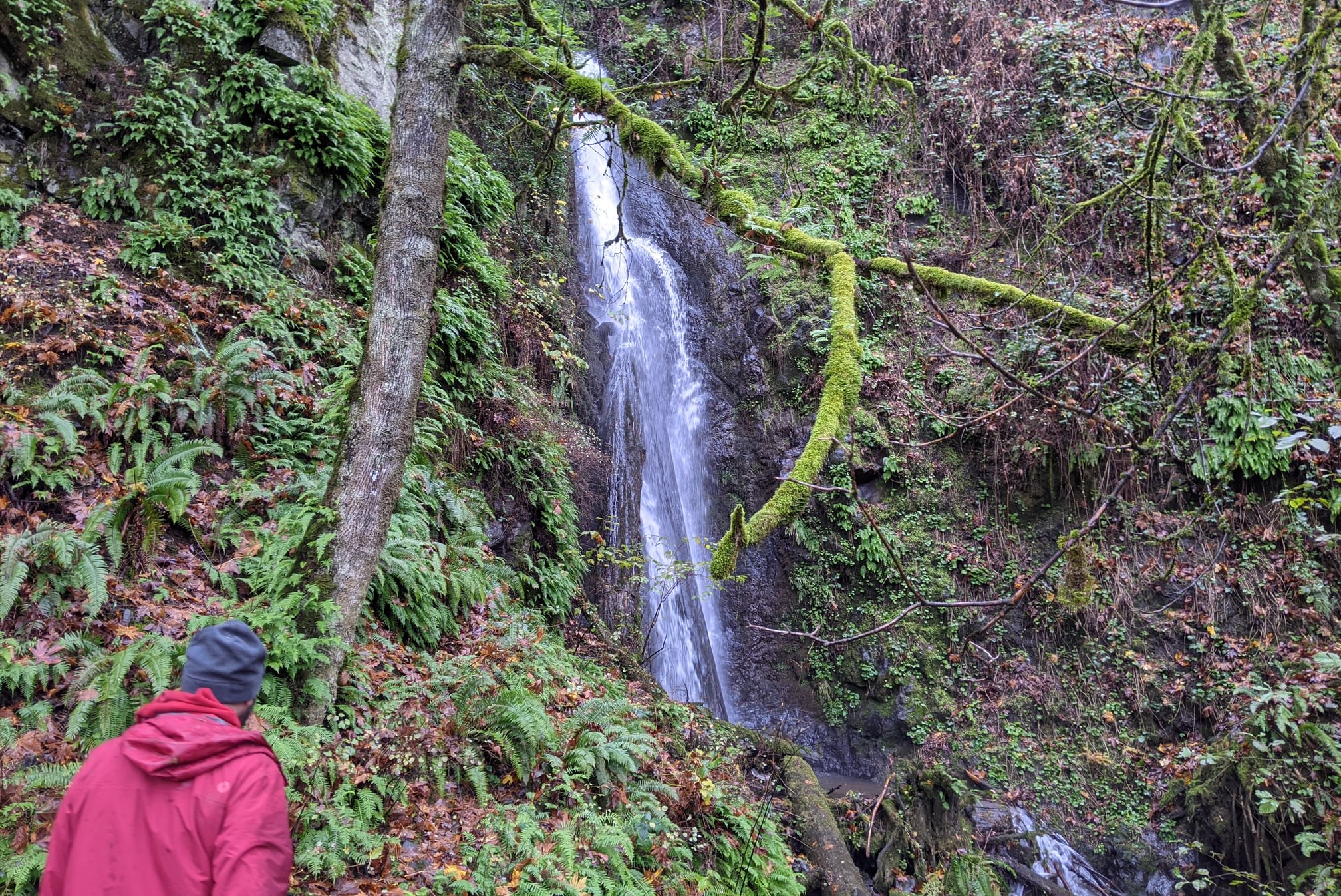 I advise against climbing near the falls – as with most relatively untraveled areas the rocks are loose and the logs are rotten, both giving way easily on the slope. It would not be fun to sustain an injury and then have to climb down the hill and fight your way back out the mess below.
