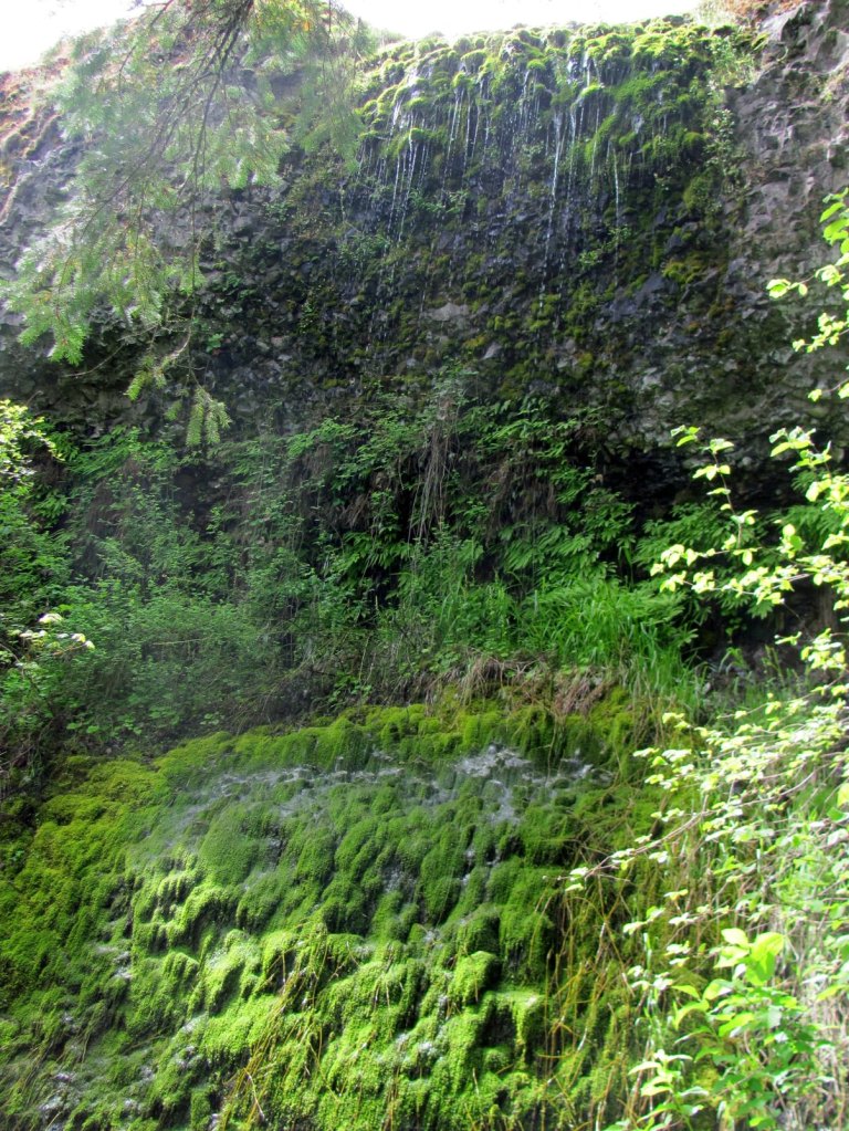After some more time walking the meadow, I noticed the streams dropped off a small cliff into the forest below. I climbed down to see what was underneath. It was almost as beautiful as the wildflowers. The stream’s trickle meandered through mossy basalt then disintegrated into a shower of droplets.