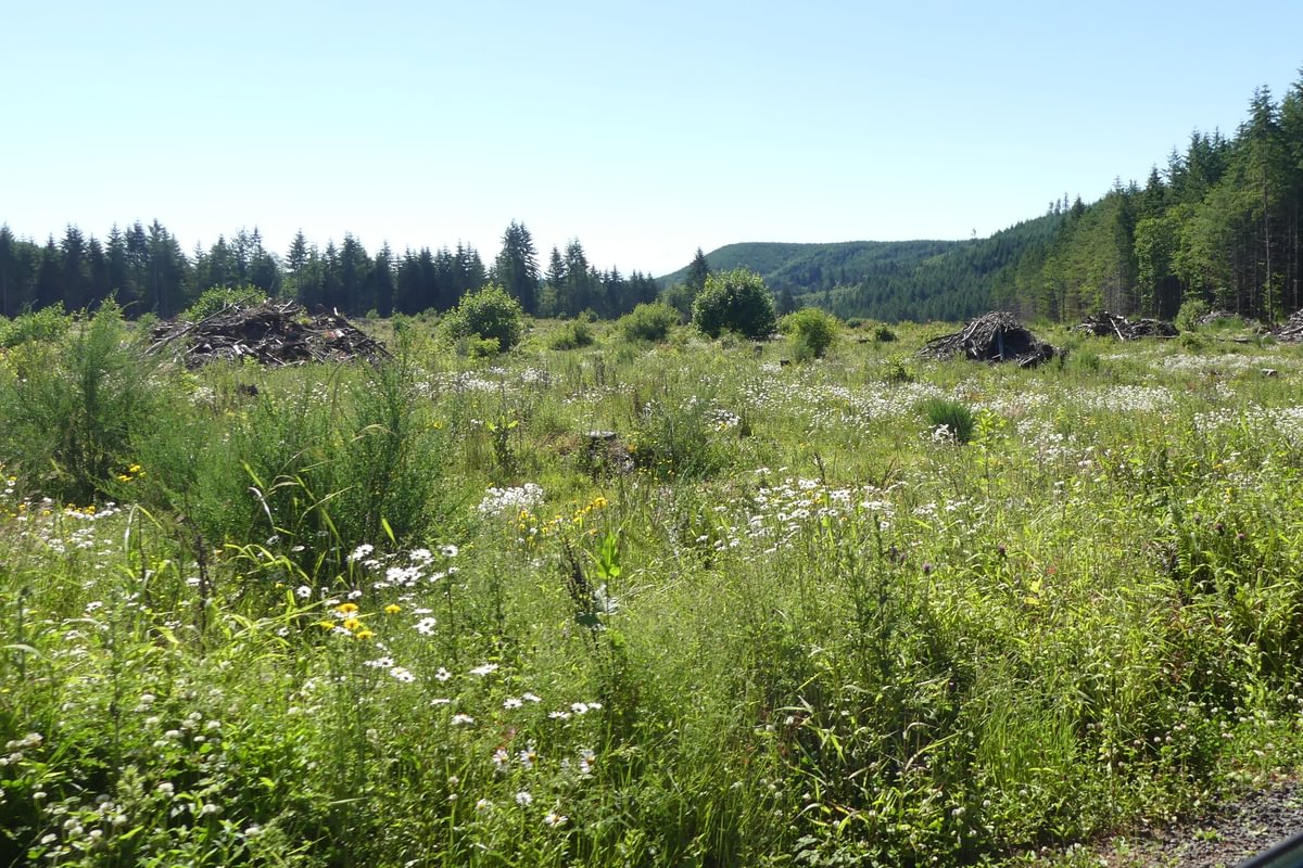 The dense Douglas Fir, bordered in Scotch Broom, is poor habitat for most animals. It’s also disliked by hikers – there’s no shade, it’s not pretty, and there’s little plant diversity. No one is going to make a drive to hike or bike through a bunch of reprod. It can take up to 20 years for forests to grow out of this stage, meaning that every time a tract is cut, that area will be scarred by clearcut and reprod for two decades into the future.
