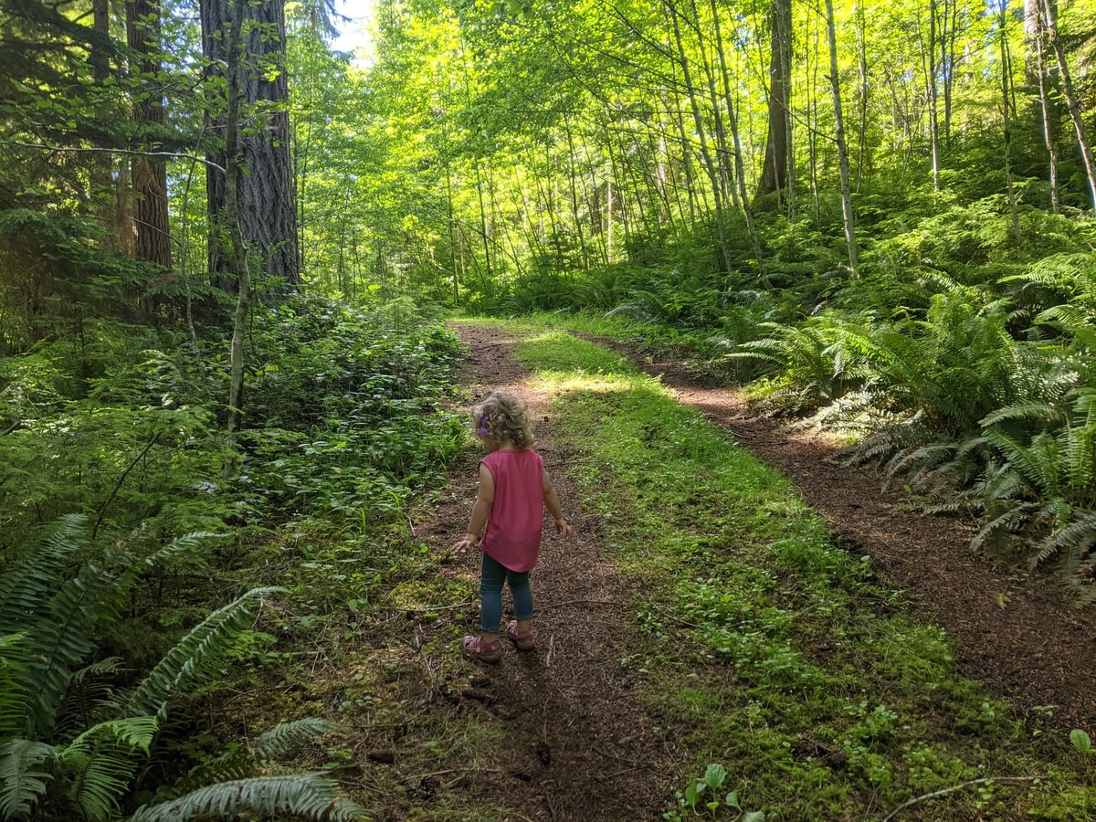 Other highlights of the hike were picking salmonberries (Sophia stuffed her mouth when she could even if she had to brave the thorns) and seeing some decently old trees. Parts of the forest appear 70-80 years old, not quite true mature forest but still a rarity in our neck of the woods. Unfortunately other sections have been clearcut recently, meaning some parts of the park are now kinda ugly.