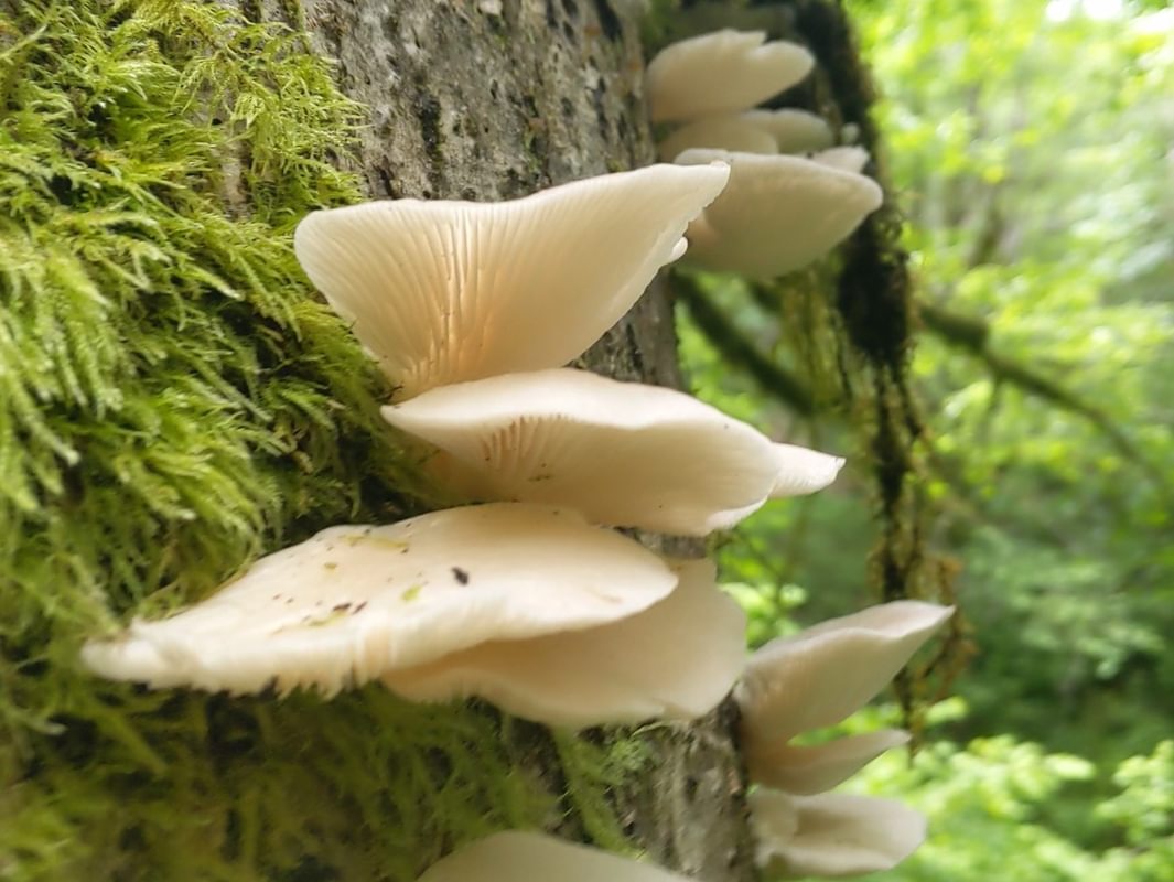 Chanterelles grow up from tree roots, especially Douglas-fir and Hemlock. The bottom part of the mushroom encases the root tips of the tree, picking up sugars from the tree and in turn using its network of fungal mycelium to supply the tree with water and nutrients. This symbiotic relationship means that healthy chanterelle populations also improve forest health.