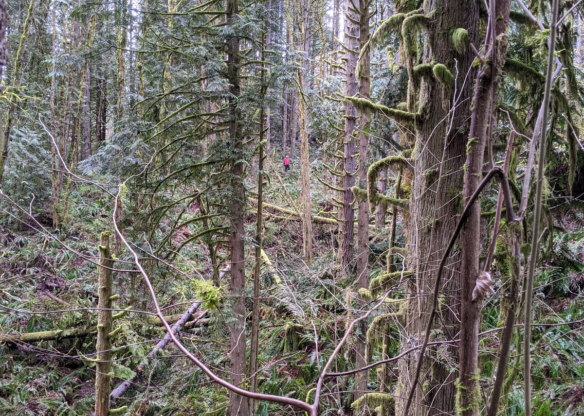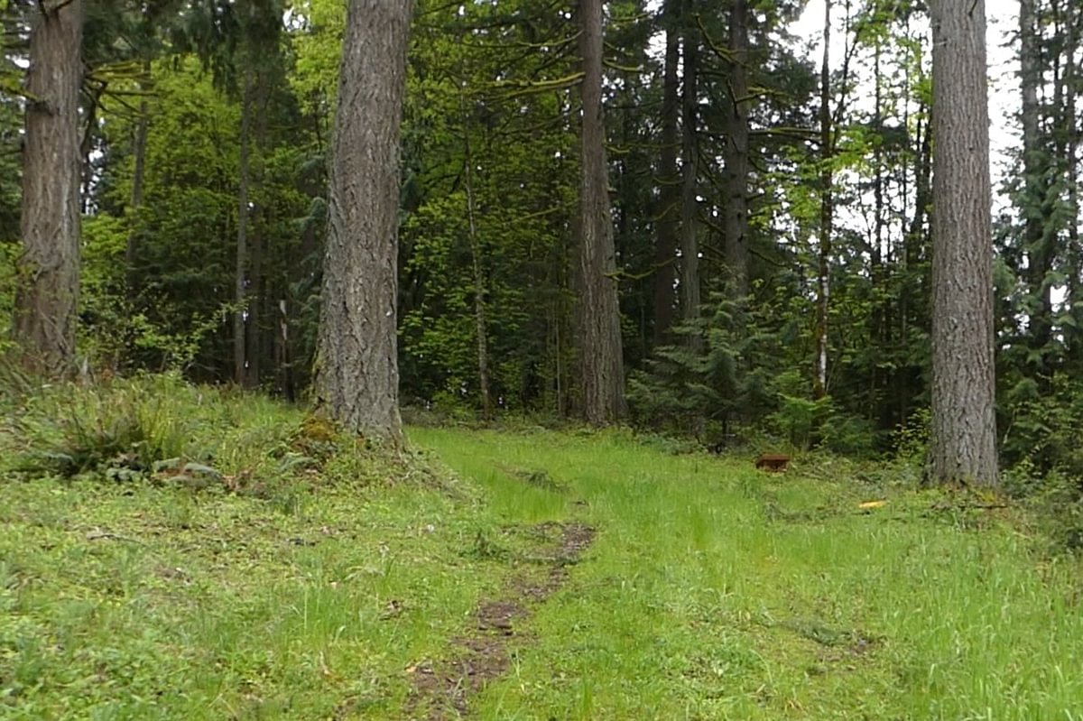You can walk makeshift roads along the east and south sides of the property, and a a sketchy one that crosses diagonally. The forest has aged into attractive second-growth with older trees than usual (50+ years old) for our region.
