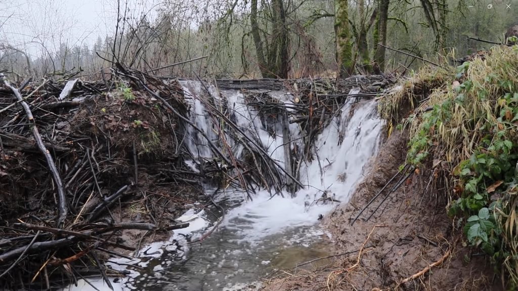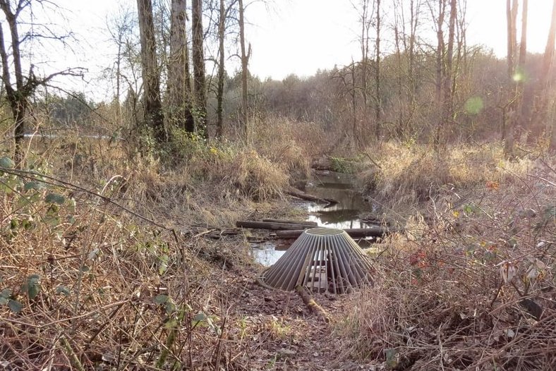 The beaver dams were included in the design as existing features we wanted to protect. Before beaver were virtually extirpated from the Pacific Northwest by the beaver trade, beaver dams existed on essentially every stream and river in the region, except those too big to dam or too small to produce good beaver habitat. Beaver are a natural part of the system, and salmon lived and thrived in a world of abundant beaver dams. The dams generally benefit the wetland ecology of Dalton Lake [i.e., – by ensuring the water is deep enough to suppress the growth of invasive reed canarygrass] and so we did not want to remove them or scare off the beaver.