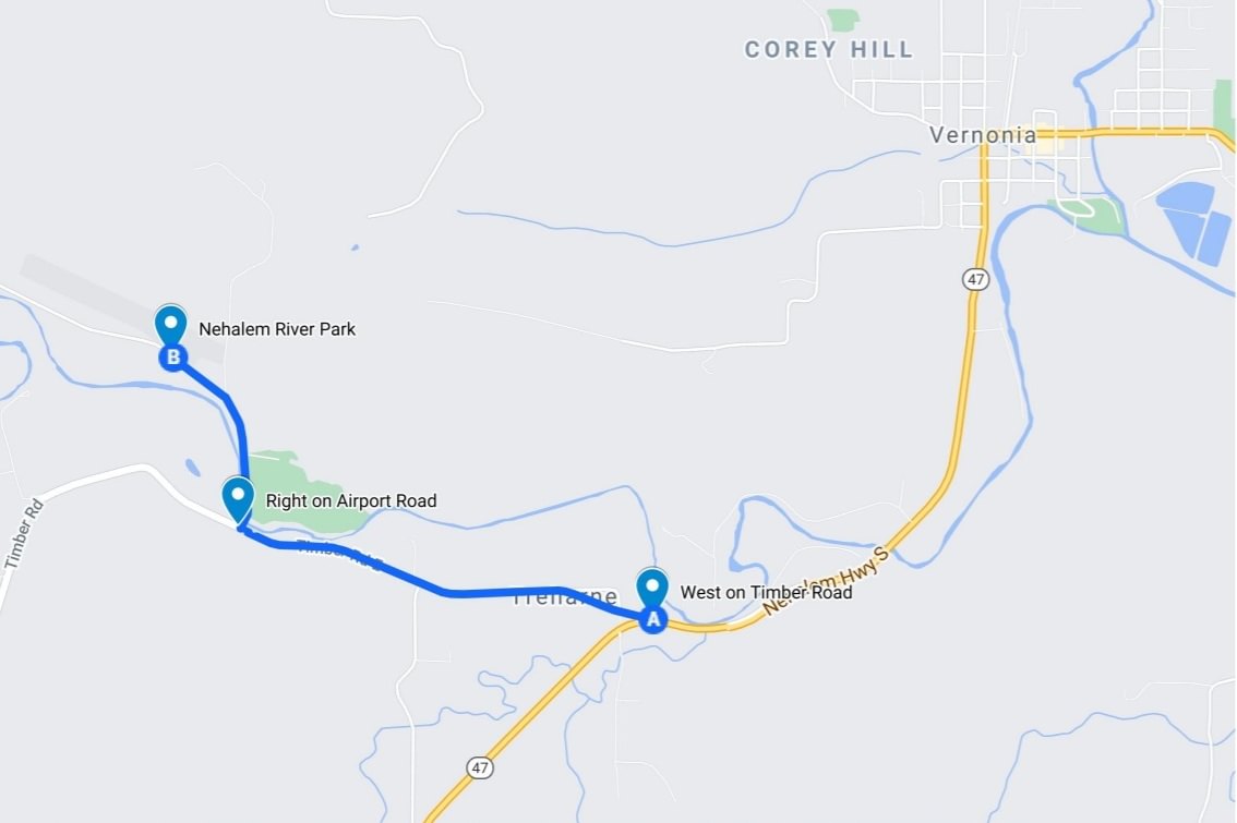 Where: 1.8 miles south of Vernonia on Hwy 47 you will reach Timber Road on the right. 1.1 miles west on Timber Road to Airport Road on the right. After 0.3 miles you’ll veer left onto Airport Way, then quickly reach the park at 15915 Airport Way (45.8508, -123.2405).