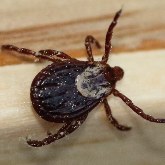 Western Black-legged Tick – A small tick just 1/10th of an inch long, but carries Lyme Disease and several other diseases. Sometimes called “deer ticks”. (photo © Thomas Barbin )