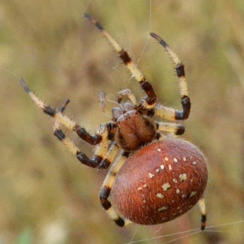Cross Orbweaver – Introduced from Europe. Like all Orbweavers it builds a new web every morning after eating the old one. (photo © emmaraven )