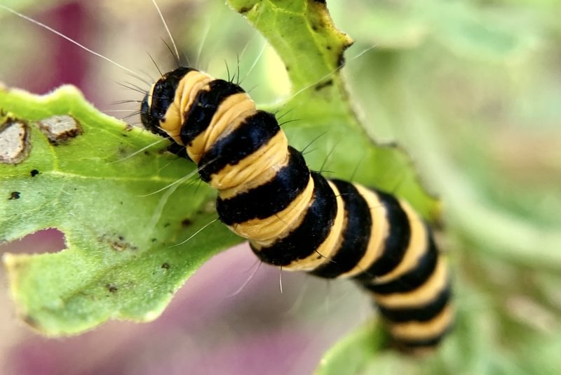 Cinnabar Moth larva ( Tyria jacobaeae ) – Introduced to control tansy ragwort. (photo © Oregon Birder )