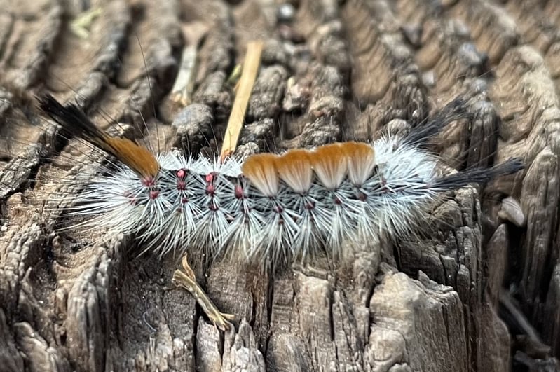 A unique aspect of Tussock moths is that only the males fly. The females are fat-bodied and flightless.