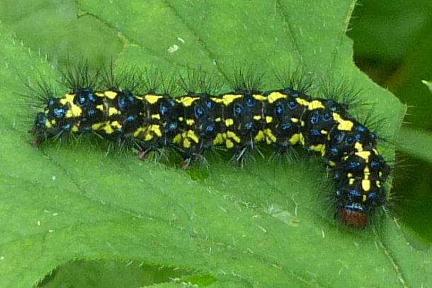 Police Car Moth larva ( Gnophaela vermiculata ) – Specialist on mountain bluebells. (photo © Jon Hakim )