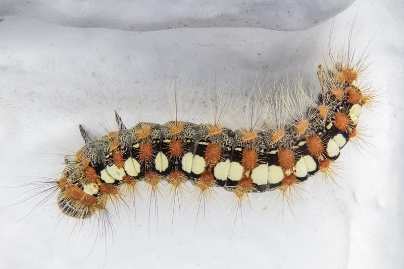 Rusty Tussock Moth (Orgyia antiqua ) – Found in forests. (photo © Jim Johnson )