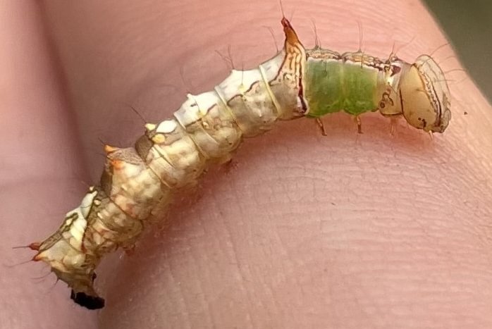 Herald Moth larva (Scoliopteryx libatrix ) – Feeds on nettles in riparian forest. (photo © Lucina Brown )