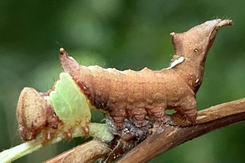 Unicorn Prominent larva (Coelodasys unicornis ) – Feeds on hardwoods. (photo © hkilber )