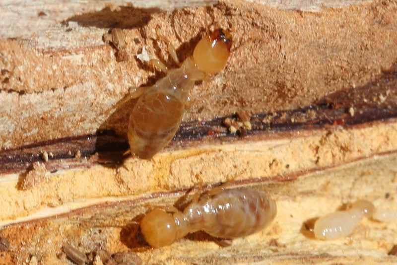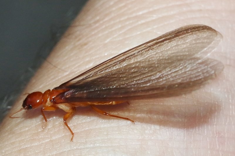Termites are social insects, with colonies that can contain millions of individuals. Most are infertile workers and soldiers, while only a few are “kings” and “queens”. You’ll see these reproductive adults flying to spread out and mate during rainy seasons, then they lose their wings and start producing larvae. Termites feed on dead plant matter, most notoriously dead wood, and as such are important recyclers in the ecosystem. Though often associated with ants in the public eye, they in fact evolved from wood-eating cockroaches.